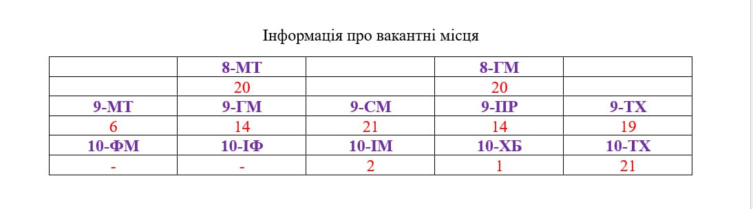 Інформація про вакантні місця станом на 26 червня