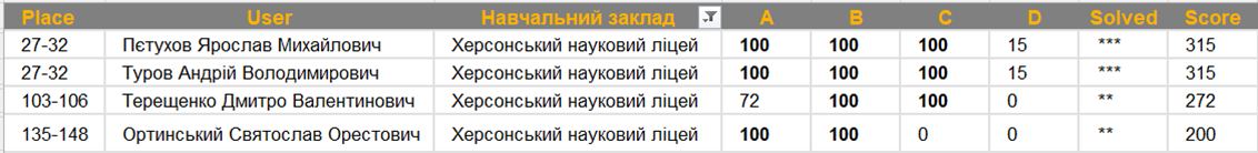 Завершився перший тур XXIV інтернет-олімпіади з програмування, яку організовує і проводить Хмельницький ОІППО. Для участі в олімпіаді зареєструвалися 400 учасників. Вітаємо наших учнів 11 ФМ класу Турова Андрія, Пєтухова Ярослава та учнів 9 МТ класу Терещенко Дмитра, Ортинського Святослава з проходженням в наступний тур з такими результатами. Бажаємо успіху в наступному турі!