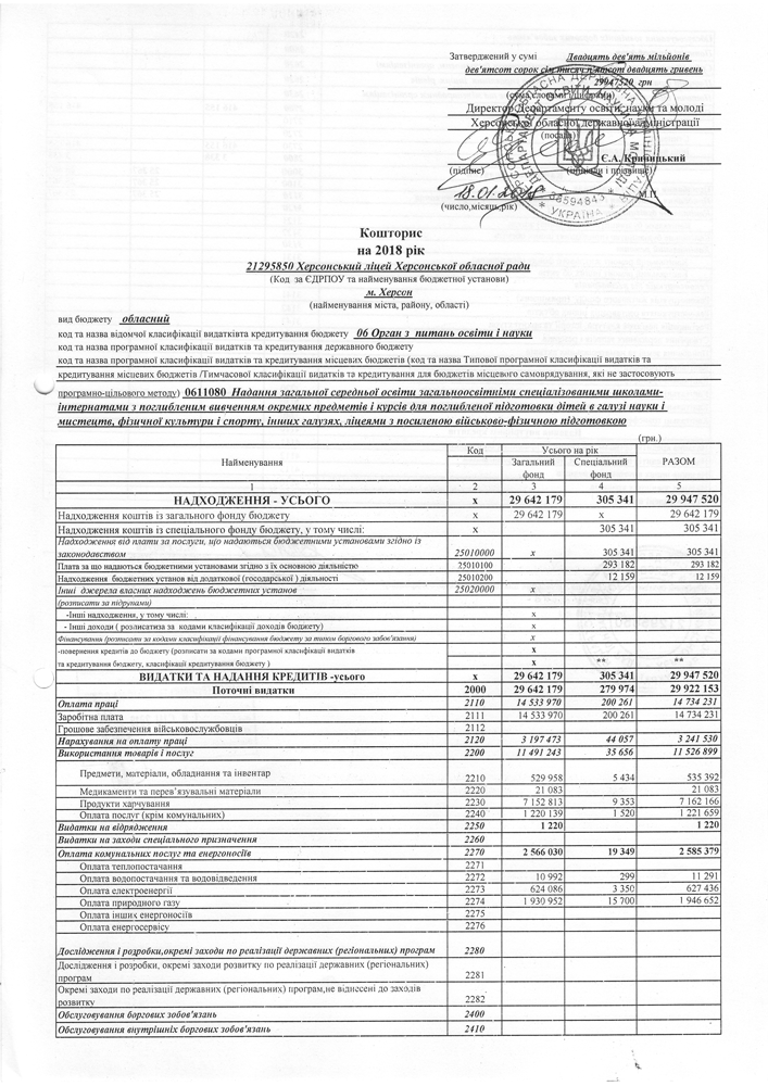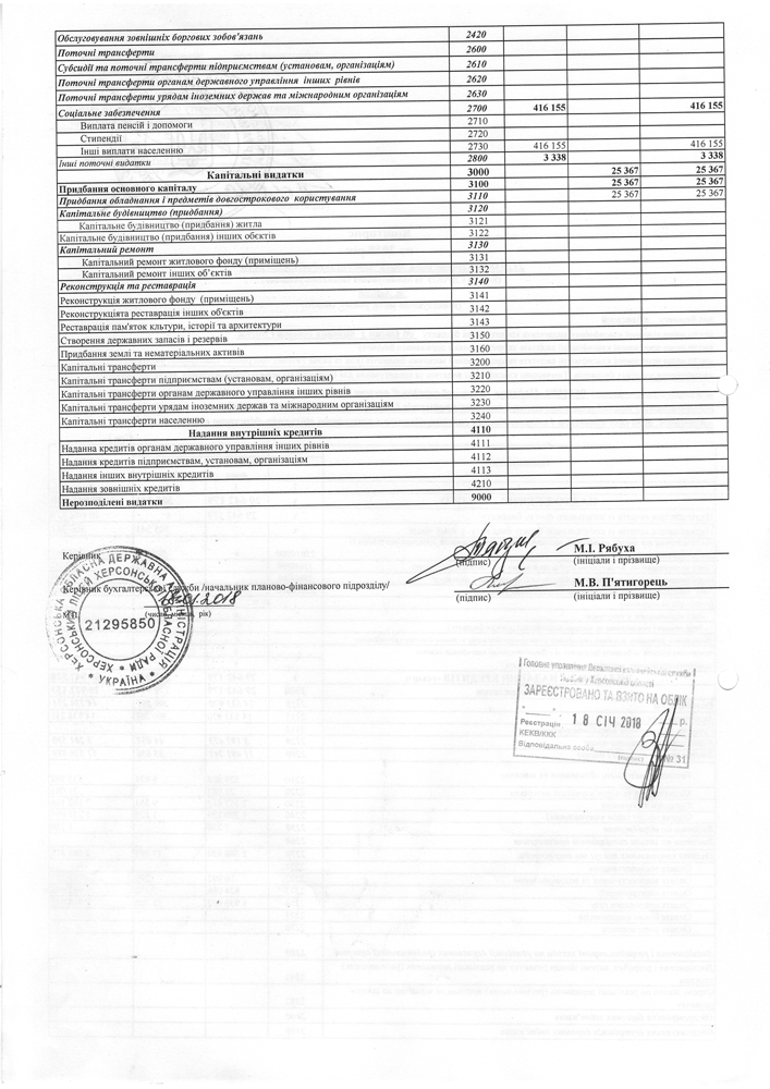 Кошторис на 2018 рік