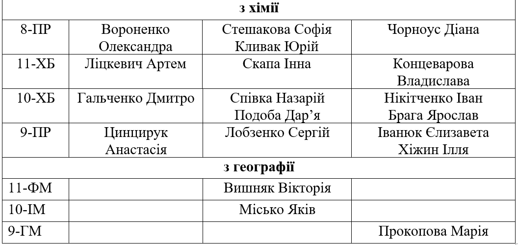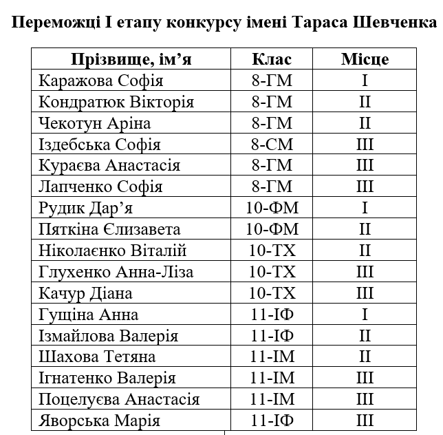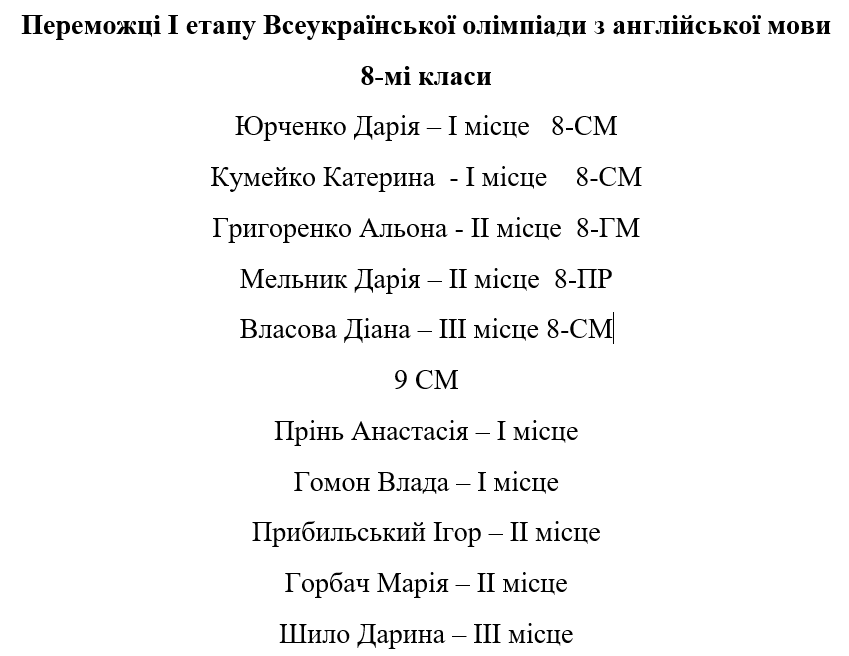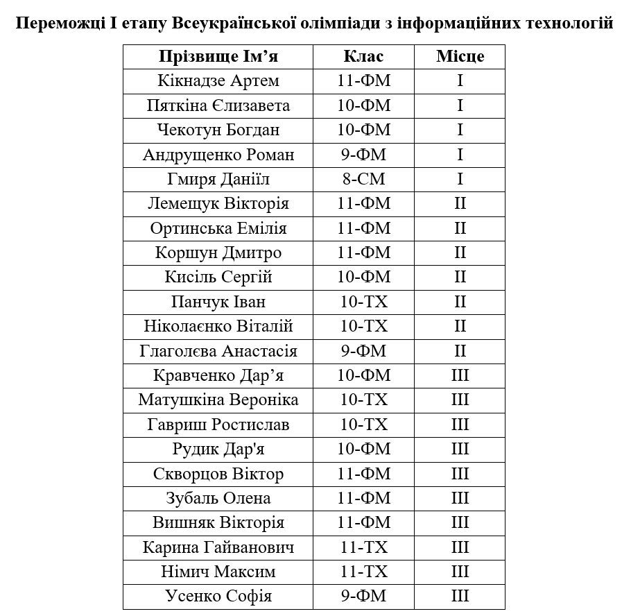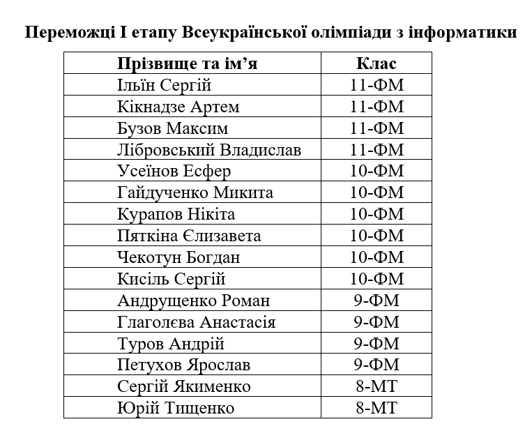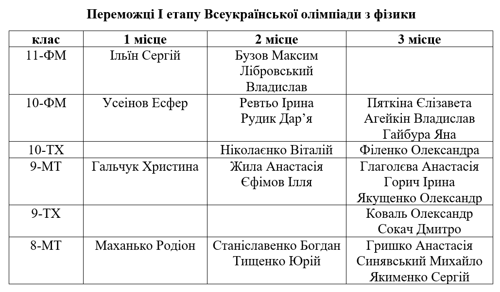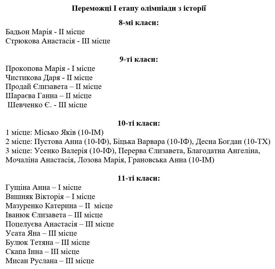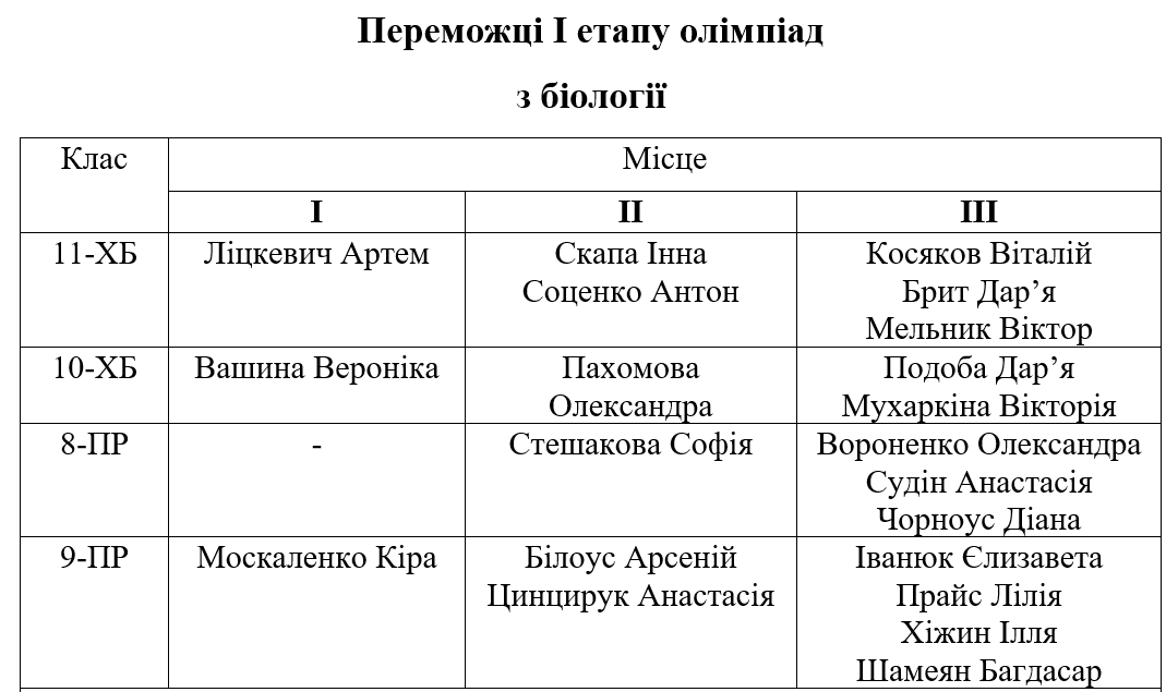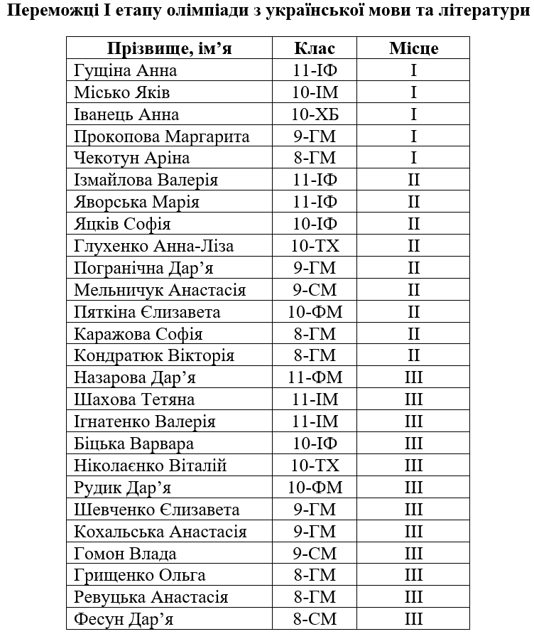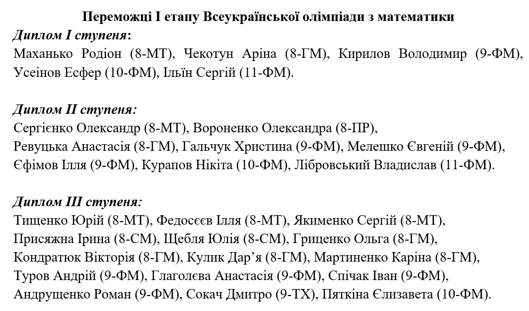Вітаємо переможців І етапу олімпіад