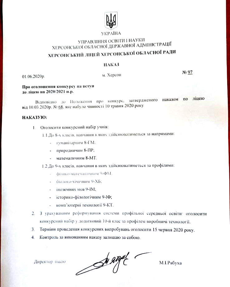 Оголошується конкурс на вступ до ліцею на 2020/2021 н.р.