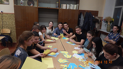 Готуючись до обласного збору лідерів учнівського самоврядування з питання національно-патріотичного виховання, лідери учнівського самоврядування ЛУР ХЛ провели акцію «Голуб миру».