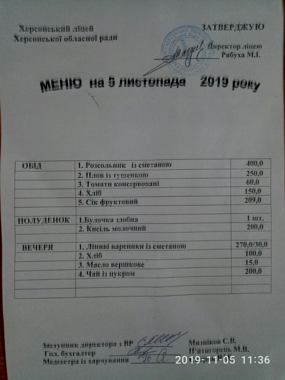 05.11.2019 вівторок 05.11.2019 вівторок